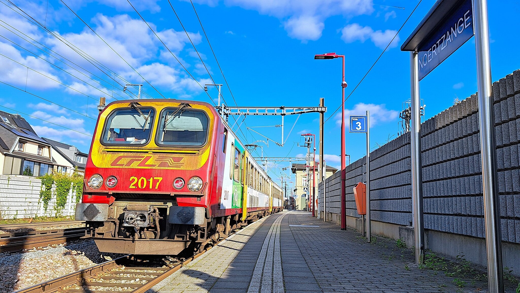 Niet alleen het najaar is inmiddels in volle gang, zo ook is de buiten dienststelling van de 2000 serie in volle gang. Hoewel eigenlijk niet meer in de personendienst te vinden houdt de 2017 dapper stand en mag op deze dag de RB tussen Noertzange en Rumelange rijden. Op hun overige stamlijntjes zijn ze inmiddels compleet verdreven door de 2400 serie. Noertzange, 14 oktober 2025. Fotograaf: Sebastiaan de Bruyn