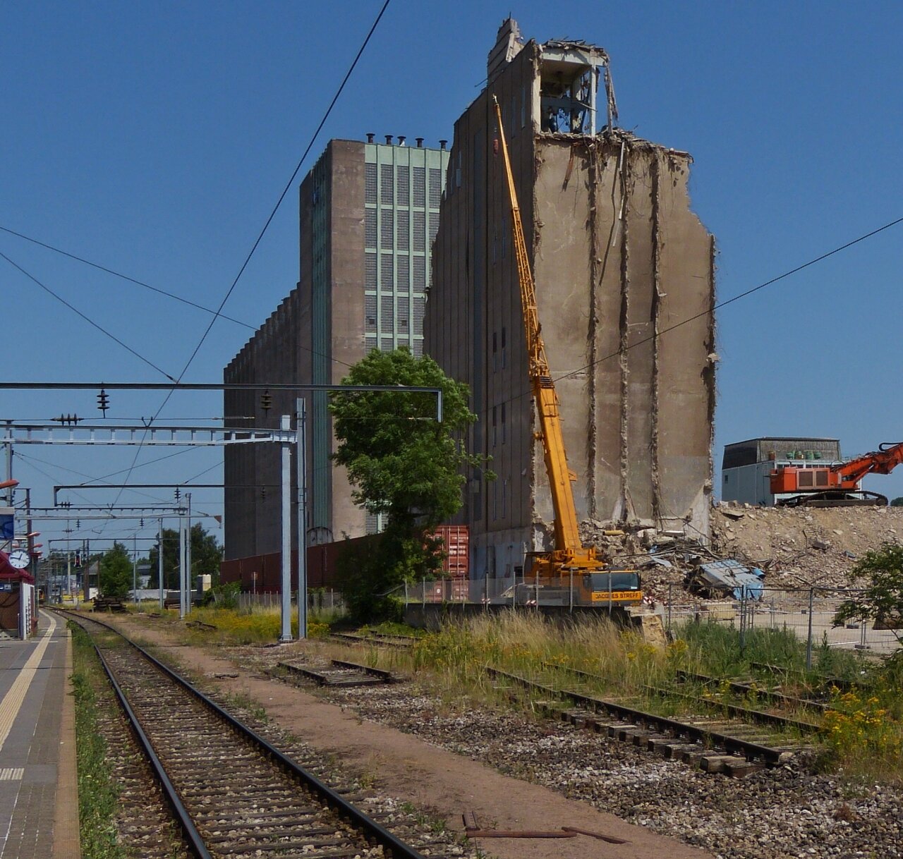 0 19.06.3012.49P1490609 Ji Het 3e spoor bevindt zich nog in de spoorbedding bij het station van Mersch, de sloopwerkzaamheden aan de silotorens vorderen snel. Mersch, 30 juni 2019. Hans de Rond Tags: #hans-de-rond #jaartal-2019 #mersch #stations #werk-in-uitvoering