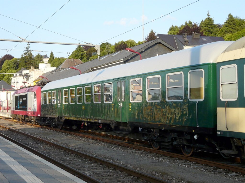 0 Hade_p1170091-1 Vanwege een openlucht concert bij het kasteel van Wiltz werd er een extra trein ingezet. Achter CFL 4015 hangt een prachtig gerestaureerd Wegmannrijtuig in de groene kleurstelling.Wiltz, 12 juni 2009,Hans de Rond Tags: #cfl-4000 #elektrische-locomotieven #hans-de-rond #jaartal-2009 #reclame #wegmann-rijtugen #wiltz