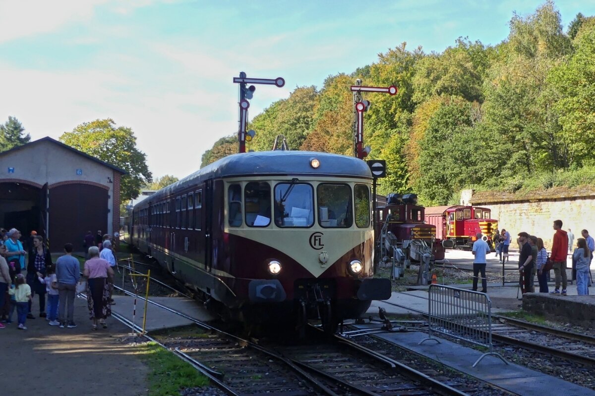 0 P1120126 Ji Westwaggon CFL Z208 komt vanuit Bois de Rodange het station Fond de Gras binnen. Fond-de-Gras, 1 oktober 2023. Hans de Rond Tags: #cfl-200-westwagon #fond-de-gras #hans-de-rond #jaartal-2023 #museum-materieel #museummaterieel #seinen