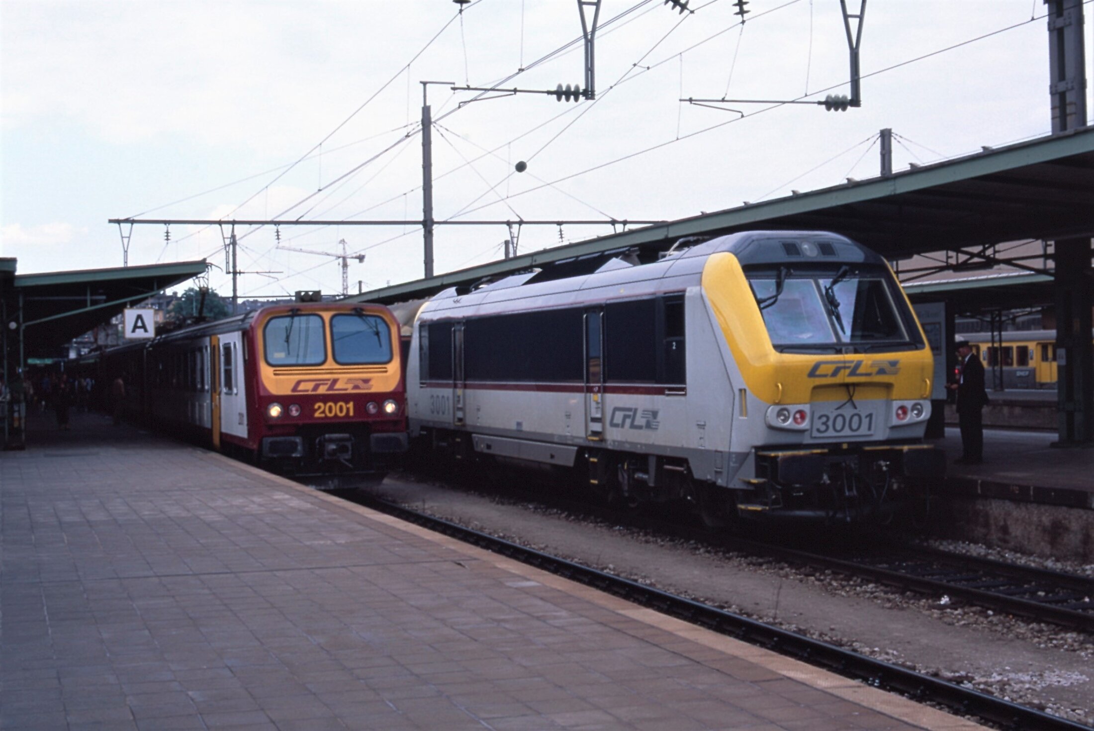 Erg grappig om van twee series naast elkaar het eerste exemplaar te zien. De CFL 3001 heeft het echter niet lang volgehouden. Deze locomotief is kort na levering volledig uitgebrand en niet meer hersteld. Luxemburg-stad, 12 augustus 1999. Fotograaf: Raymond van den Hoven